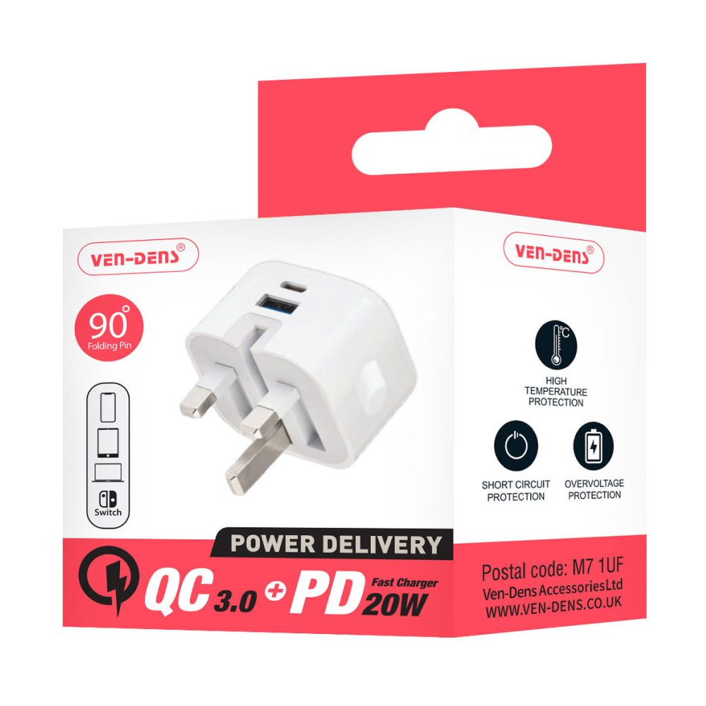 Ven-Dens 20W PD Type C + 3.0 18W USB Fast Charger